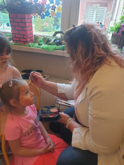 Początek czerwca to czas wyjątkowo lubiany przez wszystkie dzieci. Również nasi Podopieczni z radością świętowali swój dzień − Dzień Dziecka − na zorganizowanej przez nas zabawie. W tym dniu zamiast codziennych zajęć dydaktycznych zaproponowaliśmy naszym Przedszkolakom liczne gry i zabawy: była muzyka, dużo balonów, seans w „kinie”… Do tego odrobina smakołyków, upominki dla każdego i już wszyscy byli zadowoleni. Z początku lekko zdezorientowane Przedszkolaki, wkrótce zrozumiały, że to ich Święto i z tej okazji ochoczo rzuciły się w wir zabawy.