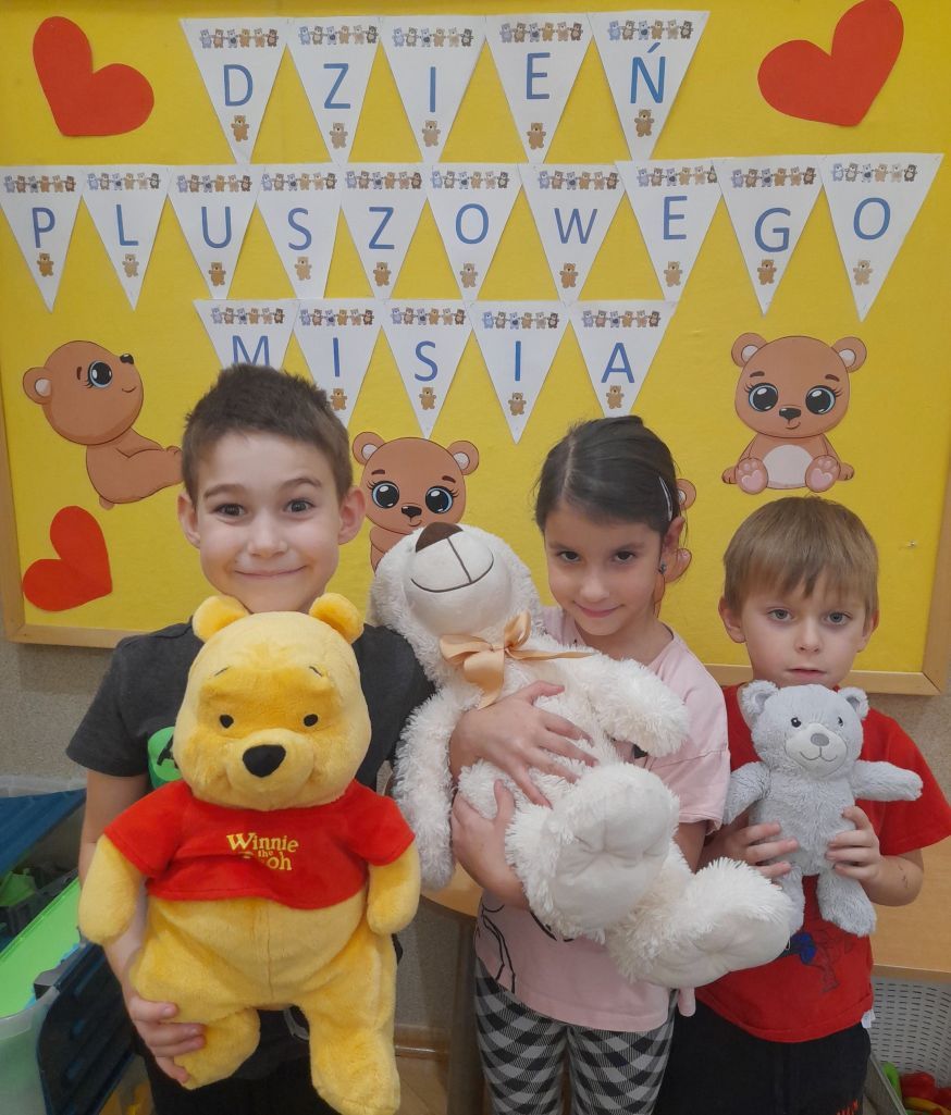 28 listopadaDyrektor DZIEŃ PLUSZOWGO MISIA W naszym przedszkolu obchodziliśmy Dzień Pluszowego Misia. Dzieci przyniosły swoje ulubione maskotki i wspólnie bawiły się przy misiowych zabawach i piosenkach. Był to radosny dzień pełen uśmiechu, ciepła i dobrej zabawy.