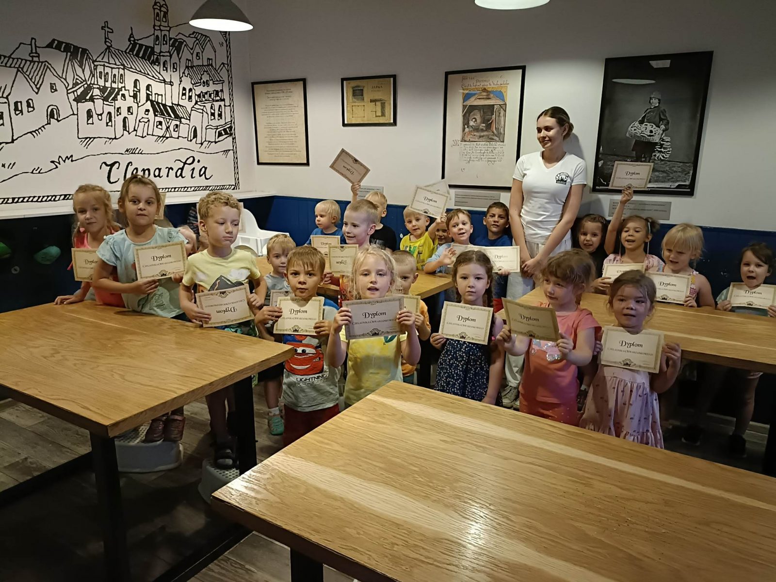 Z pysznymi własnoręcznie wykonanymi specjałami oraz „Dyplomem Czeladnika Obwarzankowego” wróciły do przedszkola.
