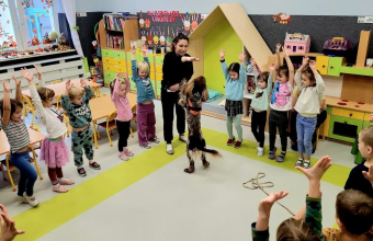 Dnia 15 listopada nasze przedszkole odwiedził specjalny gość pies Joda wraz ze swoim opiekunem. W czasie spotkania dzieci miały okazję dowiedzieć się jaką rolę odgrywa pies w życiu człowieka. Uczyły się jak bezpiecznie i odpowiedzialnie postępować z psem. Piesek zaprezentował też kilka sztuczek. Dzieci miały okazję przełamać lęk przed czworonogami i pogłębić kontakt przez podejście do psa i pogłaskanie. Bezpośredni kontakt ze zwierzętami przełamuje lęk, nieśmiałość , buduje poczucie bezpieczeństwa. Zajęcia te dostarczyły dzieciom wiele pozytywnej energii.