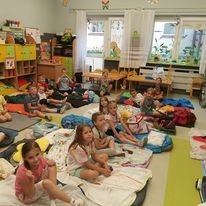Ale to nie koniec emocji…. Starszaki po pięknej części artystycznej wróciły do swoich domów, by…. spakować swoje, pożegnać się z rodzicami…. I wrócić do przedszkola na wspólne nocowanie 🙂 Wspomnienia z tych wydarzeń na długo pozostaną w serduszkach naszych absolwentów!