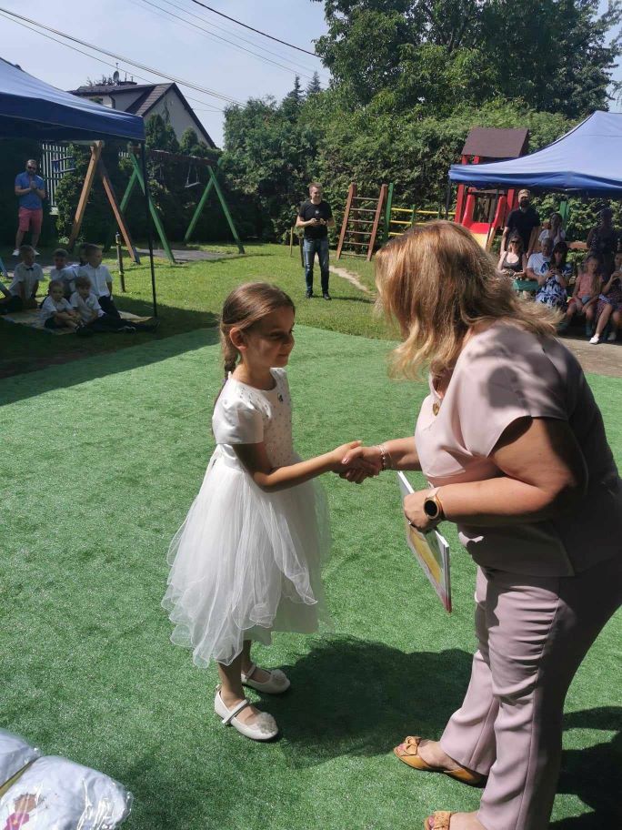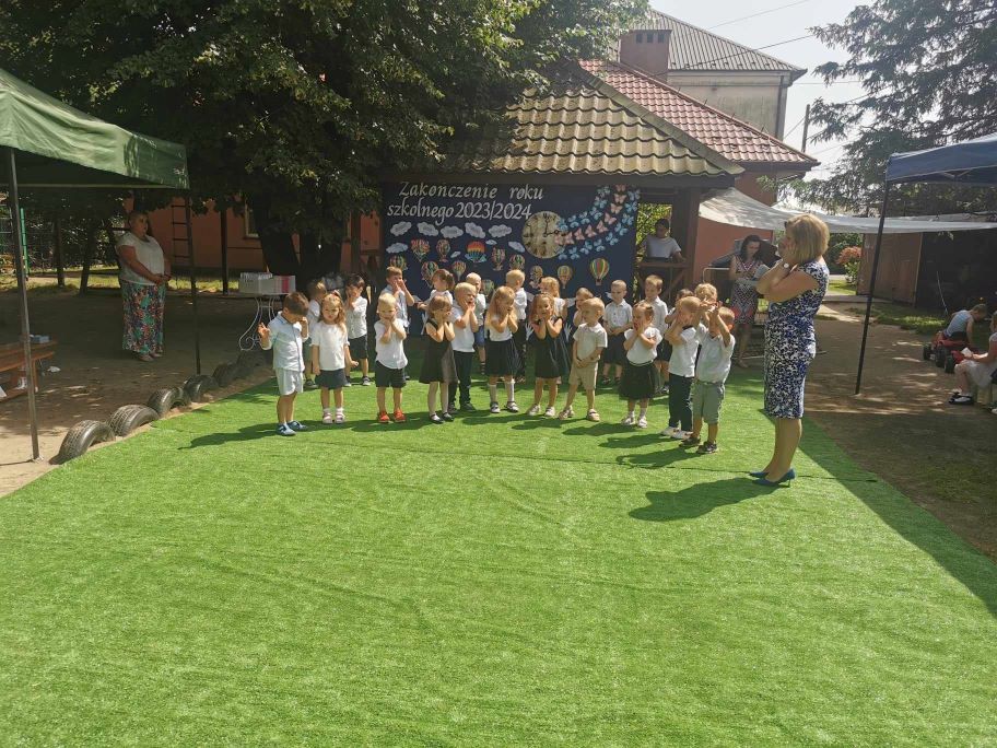 21 czerwca 2024 r odbyło się uroczyste zakończenie roku szkolnego połączone z pożegnaniem najstarszych naszych przedszkolaków, którzy wkrótce rozpoczną nowy etap w swoim życiu – pierwszą klasę. Starszaki swój ostatni występ rozpoczęły polonezem; następnie wierszami i piosenkami pożegnały się ze swoimi Paniami, całym personelem przedszkola, młodszymi kolegami i koleżankami a także podziękowały za dotychczasową opiekę swoim Rodzicom. Cudowny występ wycisnął wiele łez naszym Paniom, Rodzicom…